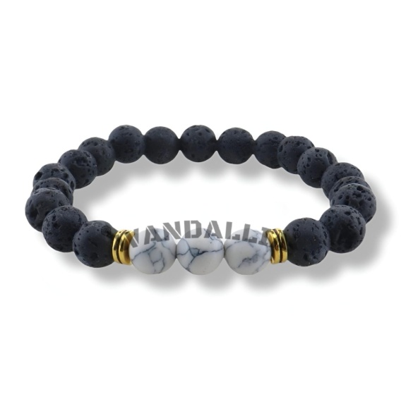 WANDALLIA Bransoletka z Koralików Naturalnych Kamieni Lawy Wulkanicznej BRN-KRL-4
