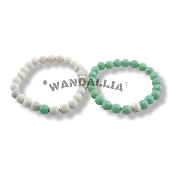 WANDALLIA Bransoletki dla On i Ona z Koralików Białego i Zielonego Howlitu BRN-KRL-21