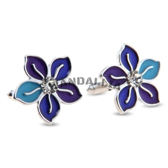 WANDALLIA Spinki do Mankietów SP-MN-34 Srebrne Kwiatki Niezapominajki Ślub